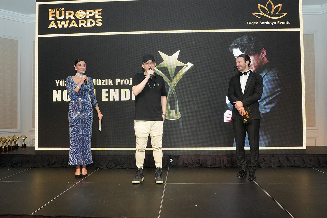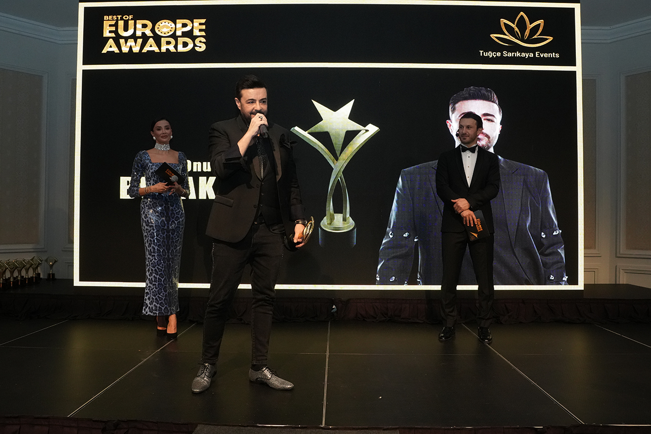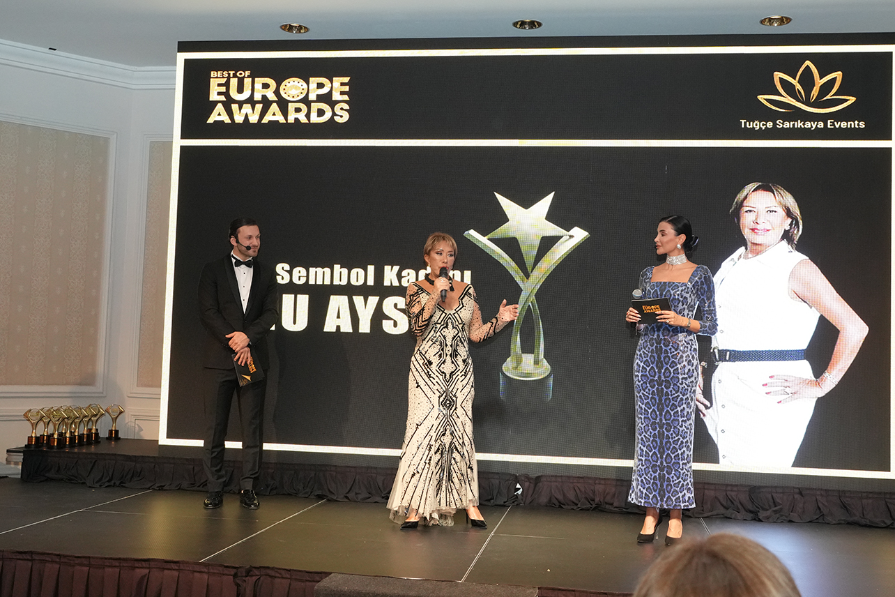 "Tuğçe Sarıkaya Event" tarafından düzenlenen "Best of Europe Awards" ödül töreni, Çırağan Sarayı'nı Avrupa'nın en parlak yıldızlarıyla aydınlattı. Ödül alan isimlerin ilk kez yapay zeka tarafından belirlendiği tören, yeni bir dönemi başlattı. Özge Ulusoy ve Kayhan Kılbaşoğlu’nun sunuculuğunu üstlendiği gecede, sunumlar Türkçe, İngilizce ve Almanca olarak üç dilde yapıldı. Gecede, Avrupa'nın sekiz farklı ülkesinden (Almanya, Hollanda, İsviçre, İngiltere, Romanya, Kosova, Karadağ ve İspanya) gelen Türk girişimcilerin yanı sıra, Doğu Demirkol, Ahu Aysal, Yonca Evcimik, Norm Ender, Yılmaz Morgül, Evrim Alasya, Gülşah Saraçoğlu, Fatih Ürek, Bade İşcil, Burak Kut, Özgür Aras, İlyas Yalçıntaş, İvana Sert, Ebru Polat, Serhat Tekin, Bircan Bali, Kate Linn, Faruk Sabancı, Seda Mete ve Süreyya Ayvazova gibi sanat ve cemiyet dünyasından birçok ünlü isim de ödül aldı. Gecenin en çok dikkat çeken sahnelerinden biri, 2023 yılında dijital mecralarda en yüksek etkileşimi alarak 'Yılın Komedyeni' seçilen Doğu Demirkol’un ödülünü aldığı andı. Demirkol, yapay zeka hakkında yaptığı esprilerle, tüm davetlilere eğlenceli anlar yaşattı. Bu yenilikçi yaklaşım, dijital çağda mükemmelliği ve etkileşimi tanımak için yeni bir standart belirledi. ‘Best of Europe Awards’, geleneksel kutlamalara en son teknolojiyi entegre ederek, bir kez daha öncü olduğunu kanıtladı.